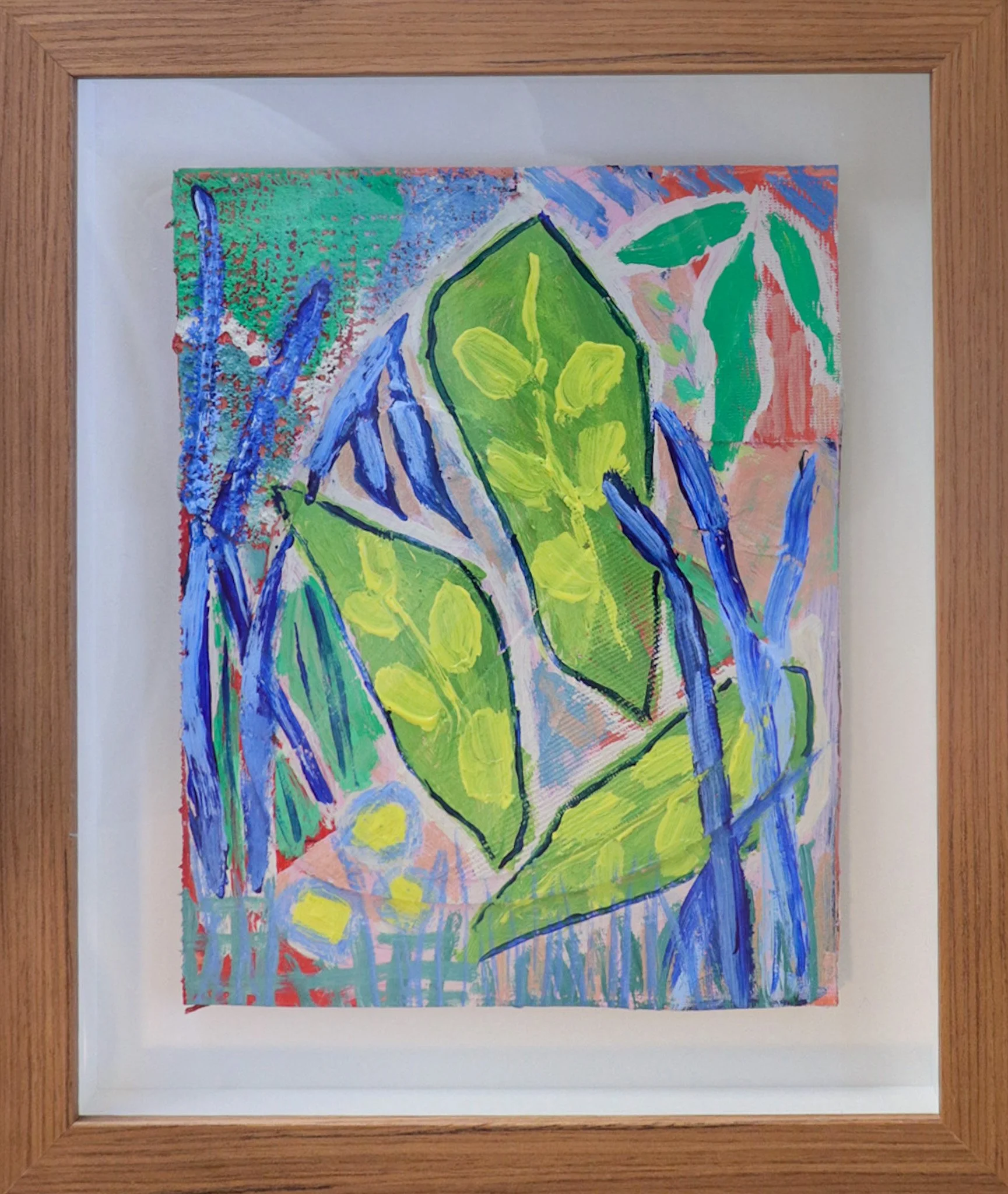 Welcome to my latest series, where the landscapes are as internal as they are external. In these works, I explore the friction between beauty and discomfort — loud colors beside soft ones, thorny plants in serene gardens, and shapes that threaten to overtake the canvas yet resolve into movement and pattern. Rooted in the Central Texas landscape, this series uses place as metaphor for the tension and resilience that live in all of us.