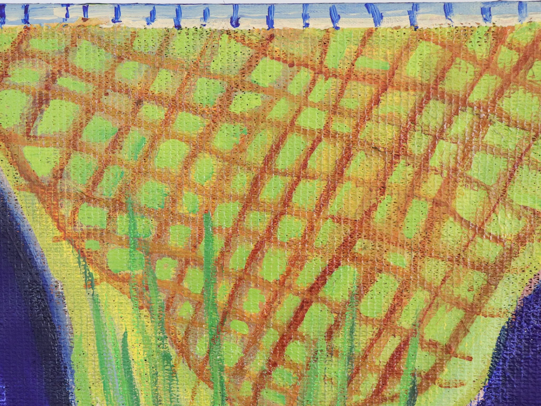 48”x36”, textiles, paint, and cardboard on canvas | Available through artist